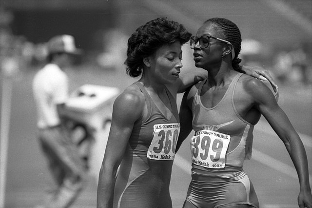 Florence “Flo-Jo” Griffith Joyner, in a one-legged blue bodysuit, bolted from the starting blocks and into the world record books…