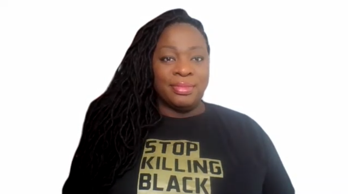 Tori Cooper wears a “Stop Killing Black Trans Women” shirt while declaring her love of house music and debunking misinformation on the ongoing HIV epidemic.