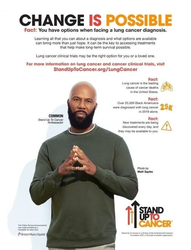 “In 2014 my father died after his battle with cancer,” said Common. “He was truly someone who inspired me and made me want to be better. I believe that we can do better for ourselves – especially as Black men when it comes to health. I’m honored to support Stand Up To Cancer’s campaign to bring awareness to lung cancer research.”