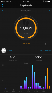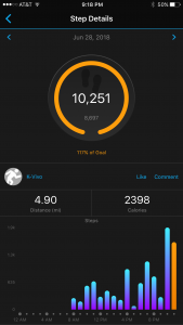 Before this challenge, I rarely made it to 7,000 steps. It would be really easy to say to myself, “Heck, you’re doing more than you’ve ever done, so give yourself a break,” or “You can take off one night, you earned it.” Nope! A goal is a goal. I am committed to 10,000 steps a day, no matter how tired, no matter what hurts, no matter what.