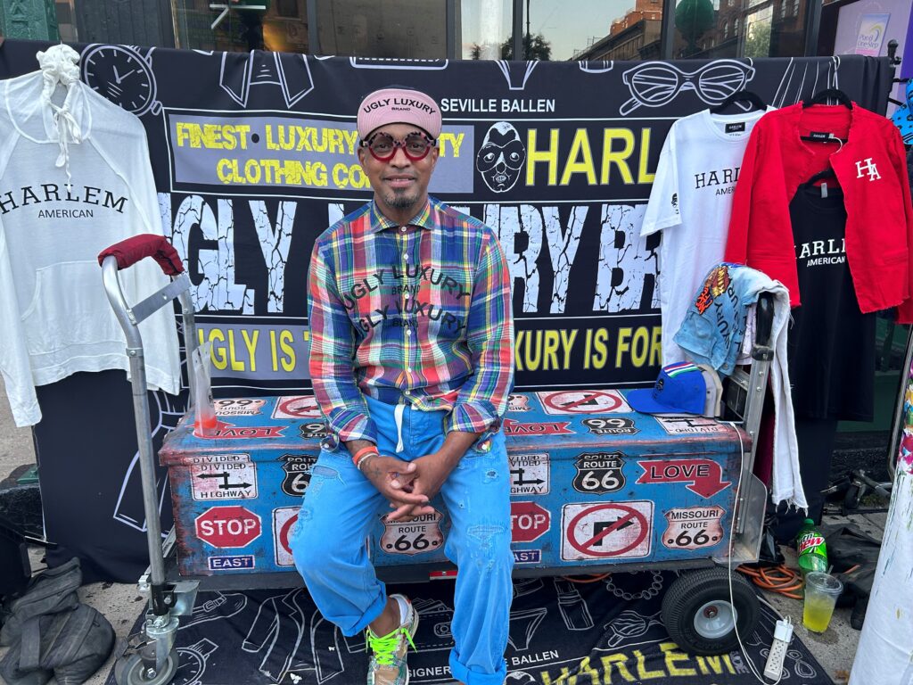 Meet Seville Ballen, a local fashion designer and vendor in Harlem. Usually posted up on 116th street and 8th ave in front of the infamous BLVD Bistro, Seville markets his business, Ugly Luxury, and sells his one of a kind clothing at his stand. A vibrant innovator with a genuine love for what he does, Seville welcomes onlookers to check out his pieces, always radiating good energy.
