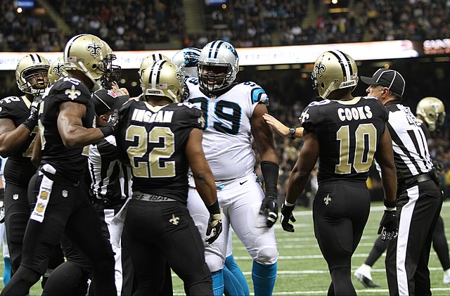 Brandin Cooks, Mark Ingram, Kawann Short, New Orleans Saints vs Carolina Panthers, NFL Football, December 6, 2015, Tammy Anthony Baker, Photographer Image credit: Wikimedia Commons