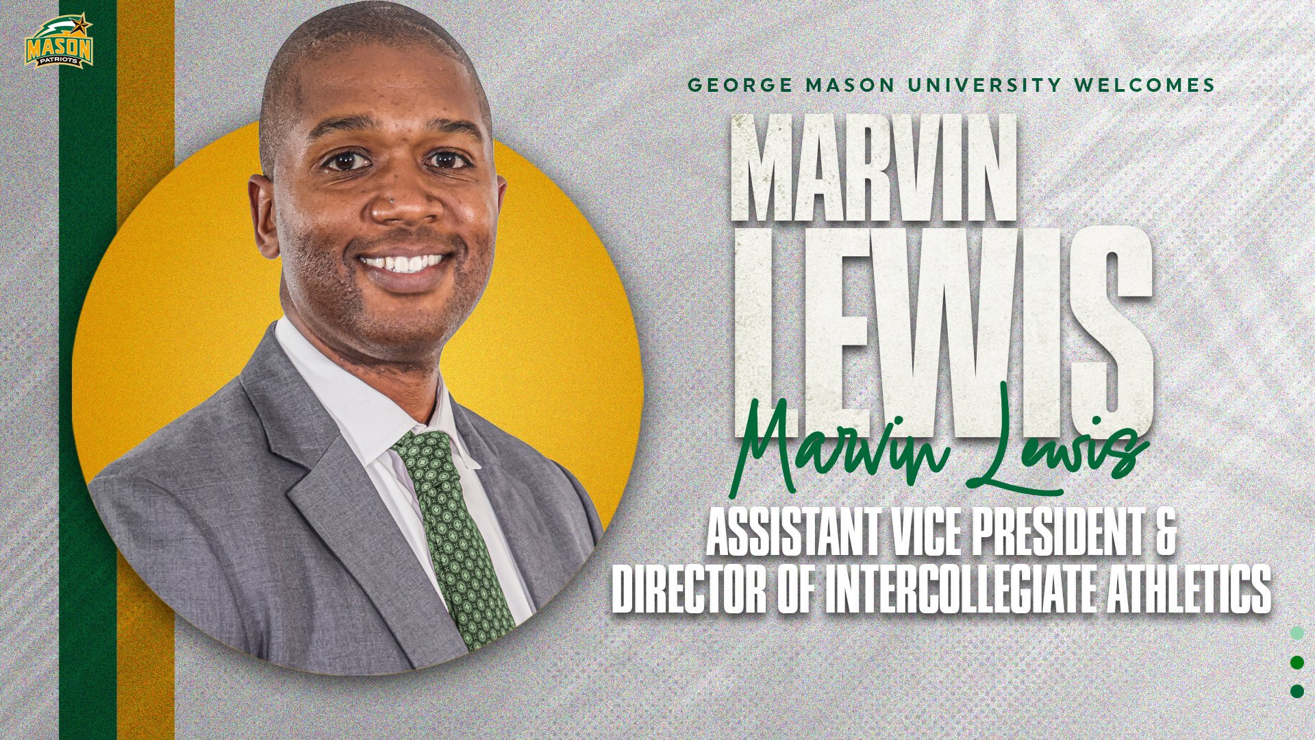 “We are pleased to welcome Marvin Lewis to Mason,” Mason President Gregory Washington said. “His strong background in Division I athletics makes him a great choice to take Patriots Athletics to the next level. But, beyond that, what impressed me from the outset in talking with him are the values he holds dear that run similar to our own. We look forward to the great things he will do in setting the standard of excellence for our student-athletes in every way.”