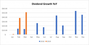 • Stocks (taxable): With stock prices rising, it has taken longer for me to make purchases. But when my raise kicks in next month, dividend growth will pick up in the second half of the year.