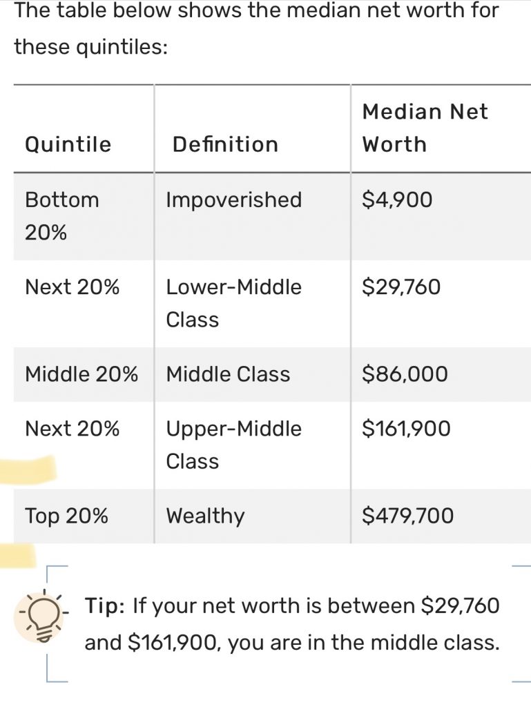 Turns out, $200K represents a strong line of demarcation between poverty and being firmly upper-middle class to me. It takes a lot of hard work to build a significant net worth: Educate yourself on all things financial (and never stop), change your mindset from consumer to investor, discipline yourself (in every area), which leads to consistency and great results.