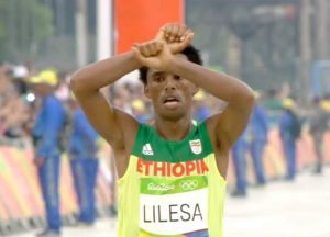 “The Ethiopian government is killing my people so I stand with all protests anywhere as Oromo is my tribe.” Liesa said after the race. “My relatives are in prison and if they talk about democratic rights they are killed. I raised my hands to support with the Oromo protest.”