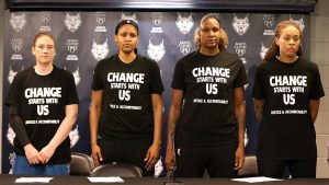 Several WNBA teams wore t-shirts in solidarity with the “Black Lives Matter” movement in 2016. Shirts worn by players on the Minnesota Lynx displayed the names of Alton Sterling and Philando Castile, two African-American men who were killed by police. Other teams followed suit. Some players even refused to answer questions that weren’t related to police brutality or racial inequality.