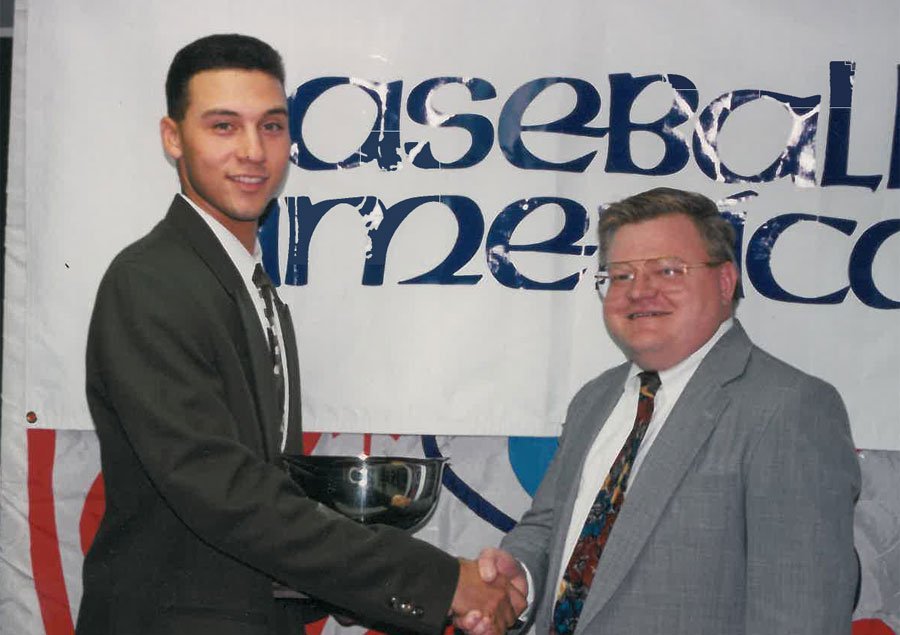 But Jeter’s true calling was baseball, and he knew it at a very young age. In the fourth grade, a young Jeter told his teacher he would play shortstop for the New York Yankees. By the time his senior season at Kalamazoo Central rolled around, he was already regarded as one of the best prospects in the country. Jeter was honored as the high school player of the year by Gatorade, USA Today, and the American High School Coaches Association during his senior season.