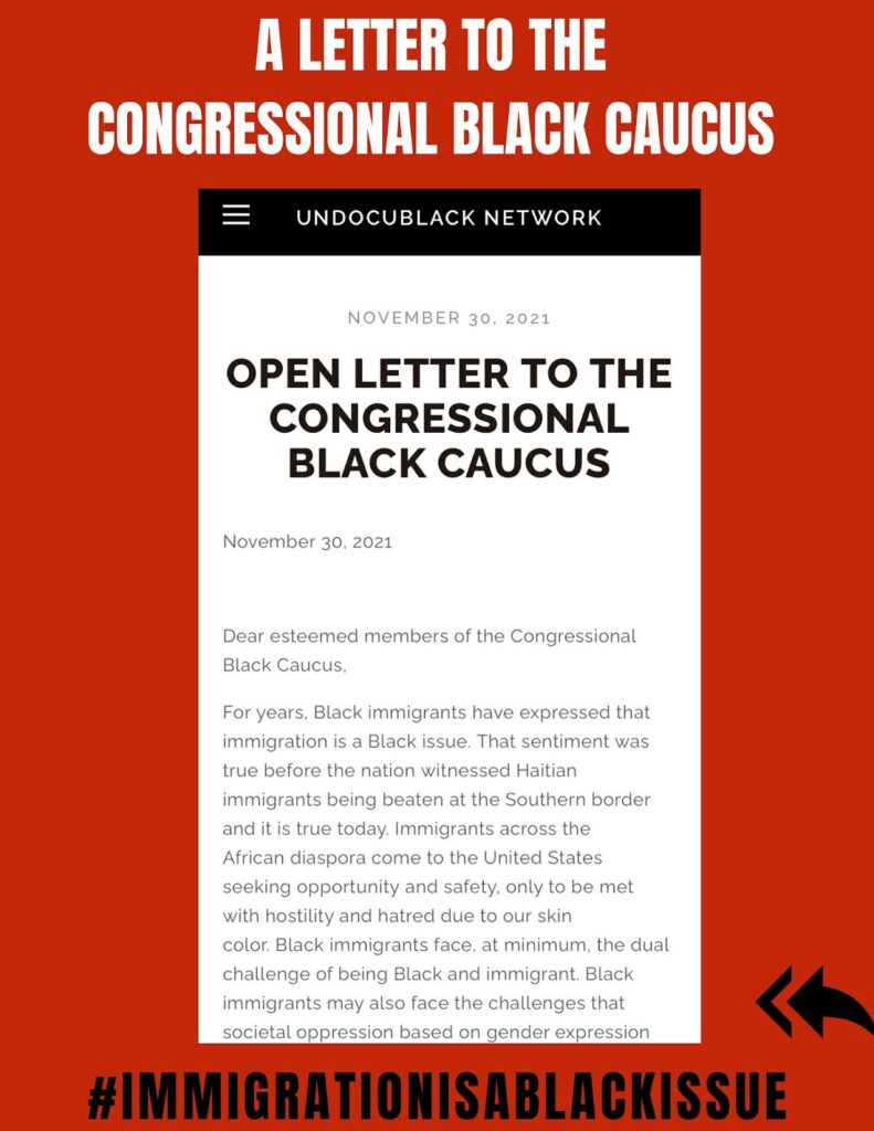 Please read and widely share the UndocuBlack Network’s open letter to the Congressional Black Caucus (CBC) here.